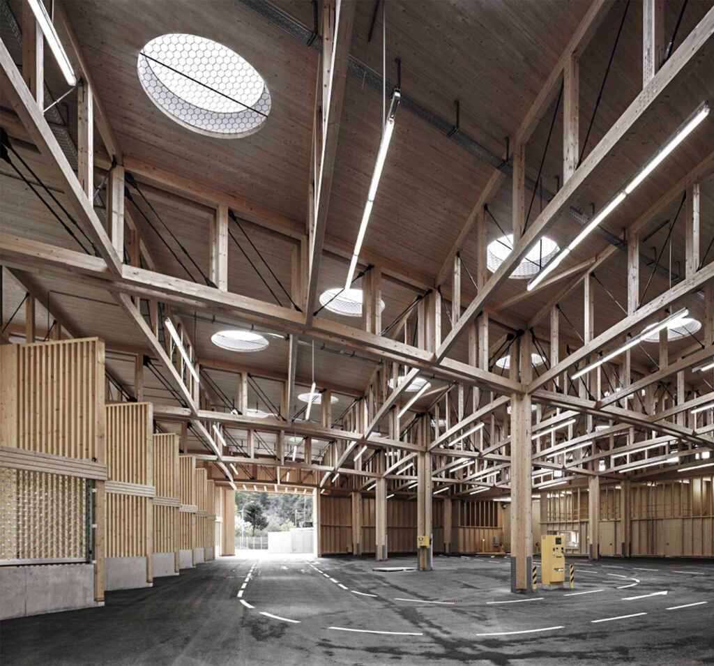 Holzkonstruktion mit Holz aus eigenem Stadtforst – kostengünstig, nachwachsend und umweltfreundlich.