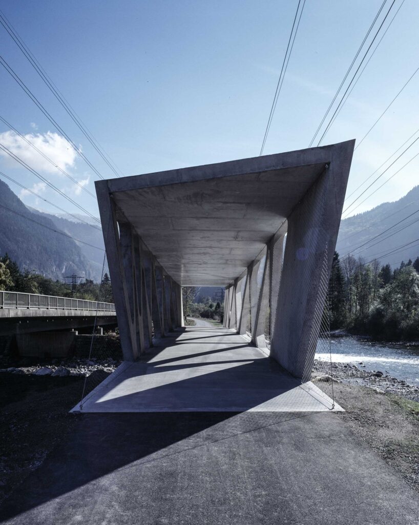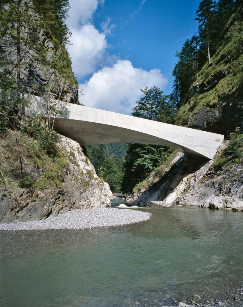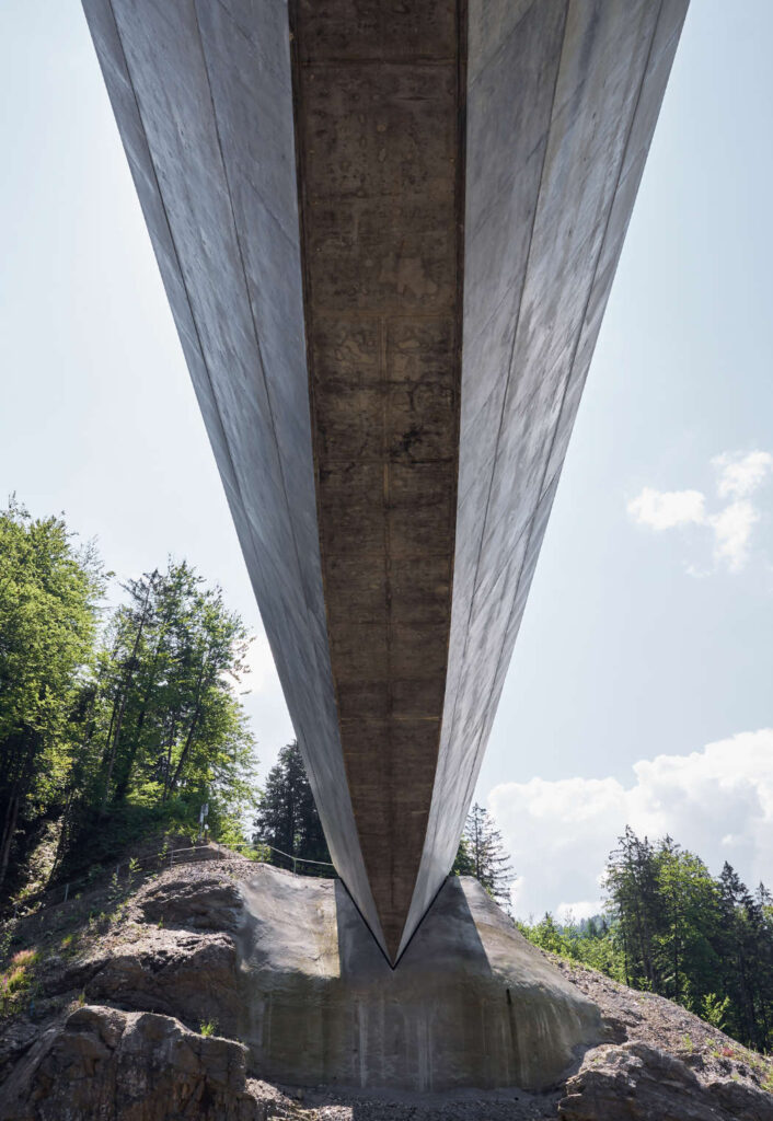 Schanerlochbrücke, Schaufelschluchtbrücke und Kohlhaldenbrücke – drei Skulpturen aus Sichtbeton in alpiner Landschaft.