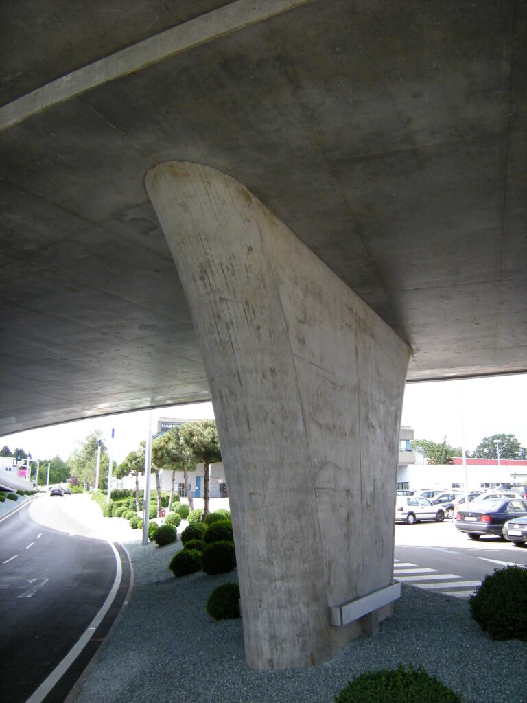 Ein Tragwerk mit seitlicher Rampenbrücke an einem neuralgischen Verkehrsknotenpunkt.